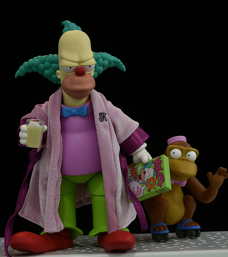All the ball necks have a good range of movement, even with the higher collar on someone like Krusty. The rotating hinge shoulders, elbows, and wrists allow for plenty of arm poses, and swapping the hands was fairly easy. Likewise the ball hips, rotating hinge knees, and rotating hinge ankles can take shallow to deep stances, as well as sitting and kneeling poses. The feet can remain flat on the ground as well, thanks to the rocker movement in the ankles.