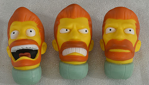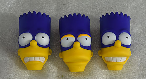 The eyes were generally straight and even, although the side eye expression on the angry Hank seemed just a smidge off. My only real problem was with one of the three Bartman heads, where several of the hair spikes were already showing wear on the tops.