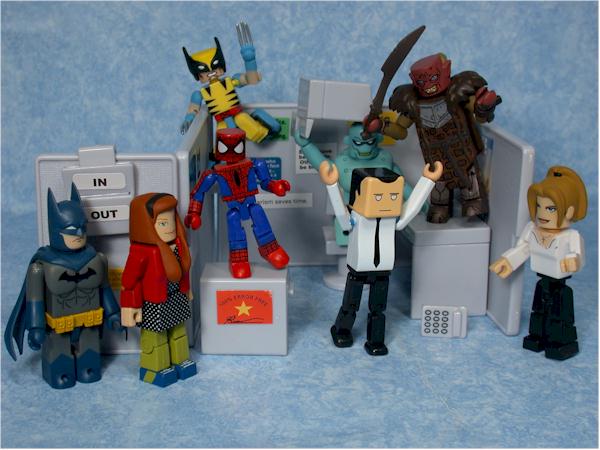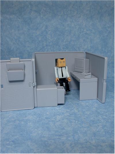 Cubes. Why didn't I think of this? Because the obvious is so often not. Using the scale of the average mini-figure, around 3", they have released a series of figures based on people you see everyday, like Bob. Bob isn't the important feature though; it's his accessories and diorama, based on the cubicles at work. The diorama looks just like the world many of us live in every day, and gives you a chance to build your own cubicle farm to micro-manage.