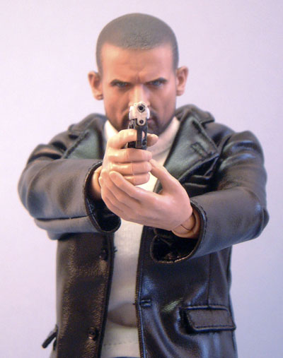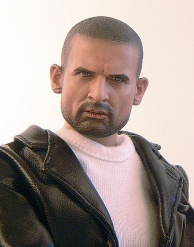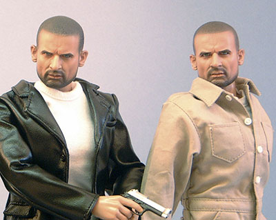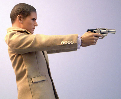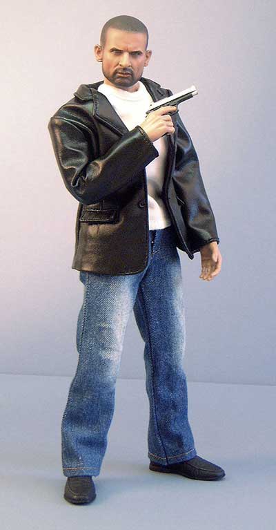 a blue baseball hat. This is a supremely tailored 1/6 suit and is