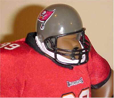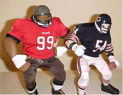 The figures have 12 points of articulation (neck, chest, shoulders, biceps (swivel), wrists, thighs and ankles. There’s not a tremendous amount of articulation but there’s a fair amount. They can strike a pretty limited selection of poses. Don’t expect to get a lot of “football” poses. It took quite a bit of messing around to get Sapp any where close to a 3-point stance.
