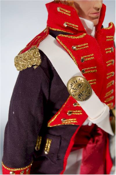 The outfit consists of his military dress coat, pants, shirt, red sash