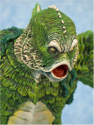 The paint ops are solid, although nothing exceptional. There's some detail work on the skin and scales, and everything is clean and consistent. The green is a tad light and bright for my tastes, and I think a slightly darker choice would have given him a more realistic fish/frog appearance. Still, there's little to complain about when it comes to the quality or application.