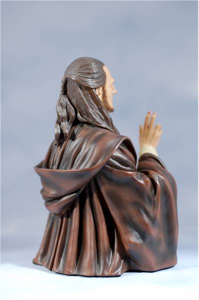 There's no heart, and there's no left hand pointing to it (thankfully), but that doesn't make the obvious imagery any less of a match for most folks. And ignoring any religious implications or other nonsense, choosing a design that so closely mirrors a common, well known pose is just plain distracting. When I look at a statue or bust of