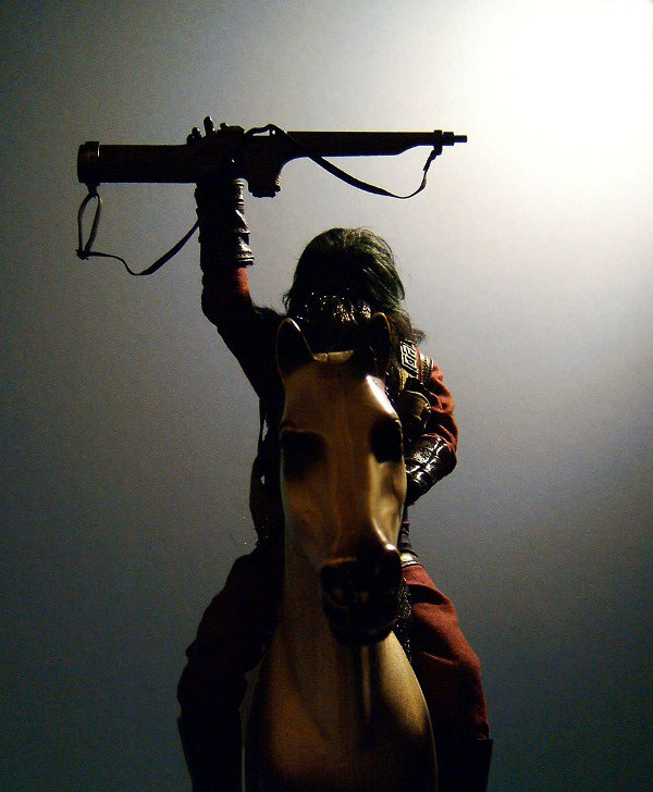 helmet, machine-gun, pistol, two extra hands and figure stand. The two