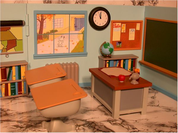 The playset is a different story. The details are great, particularly on fixed objects like the blackboard,